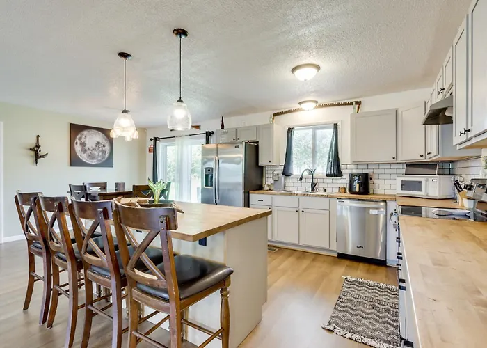 A 1 Mi To Shops And Cafes Updated Cassville Home! dispõe de refrigerador, forno e utensílios de cozinha e de cozinha equipada para cozinhar.